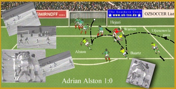 More than 30,000 fans packed the Sydney Sports Ground to watch the 1st leg. Prior to the game some fans from both sides actually stormed the field and had to be detained and escorted out. Iran finally kicked off the match. Both teams had early chances with Kargarjam breaking up a dangerous Australian freekick and Mazloomi sending his chance wide. Another Australian chance was saved on the line by Kashani. Mid way through the half, Hejazi had to react swiftly to stop a thunderous shot. With only a few minutes until halftime, Australia earned a free kick on the right flank. Hejazi came off of his line to stop the initial header and the following rebound, but an empty net provided an easy subsequent shot for the Australians to take the lead.