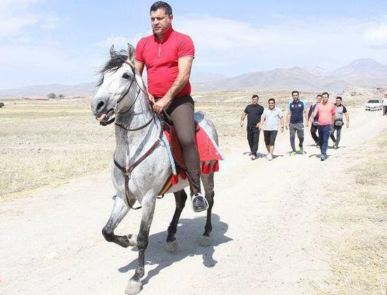 Ali is bigger than the poor horse..