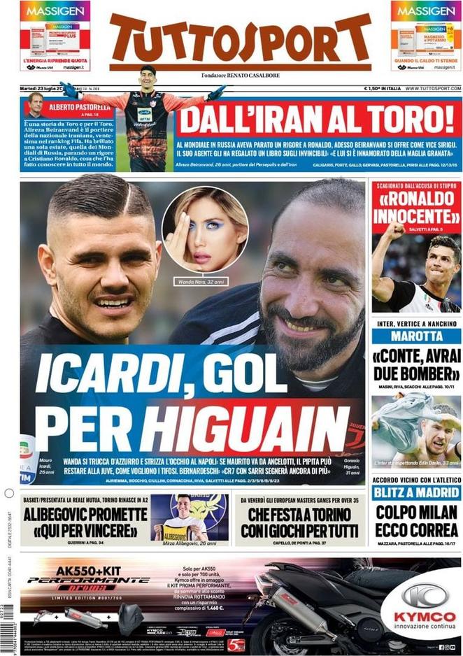 "Today's edition of Tuttosport is cutting the question concerning the second goalkeeper at Turin, with an extreme defender who has offered himself from Iran. His name is Alireza Beiranvand, he is 26 and plays in Persepolis, Iran. In the last Russian World Cup, Cristiano Ronaldo had saved a penalty. Now he has offered to Turin as deputy Sirigu after falling in love with the grenade shirt through a book given to him by his agent. Now Turin is thinking about it and will evaluate it in the coming weeks."