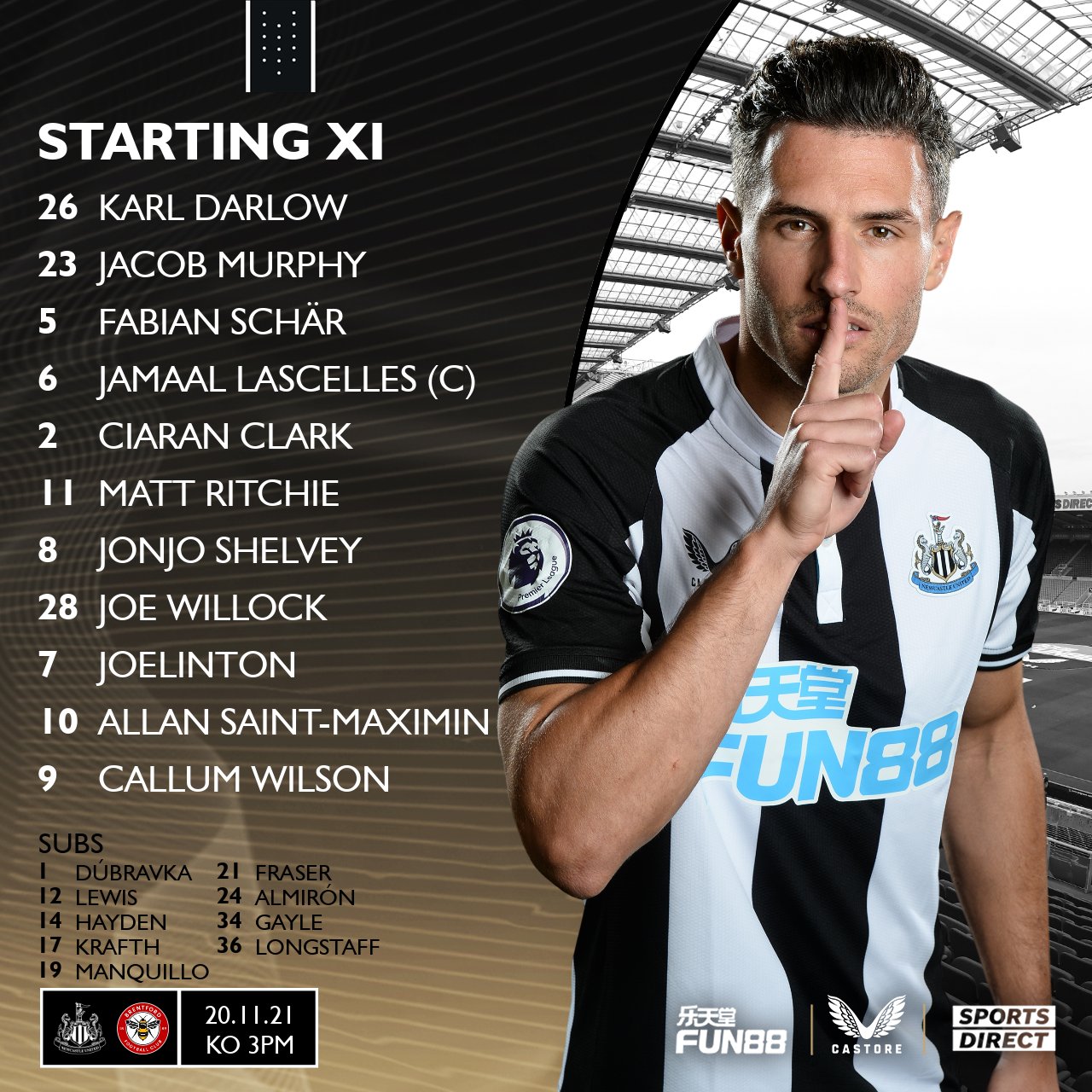 This is how Newcastle lined up