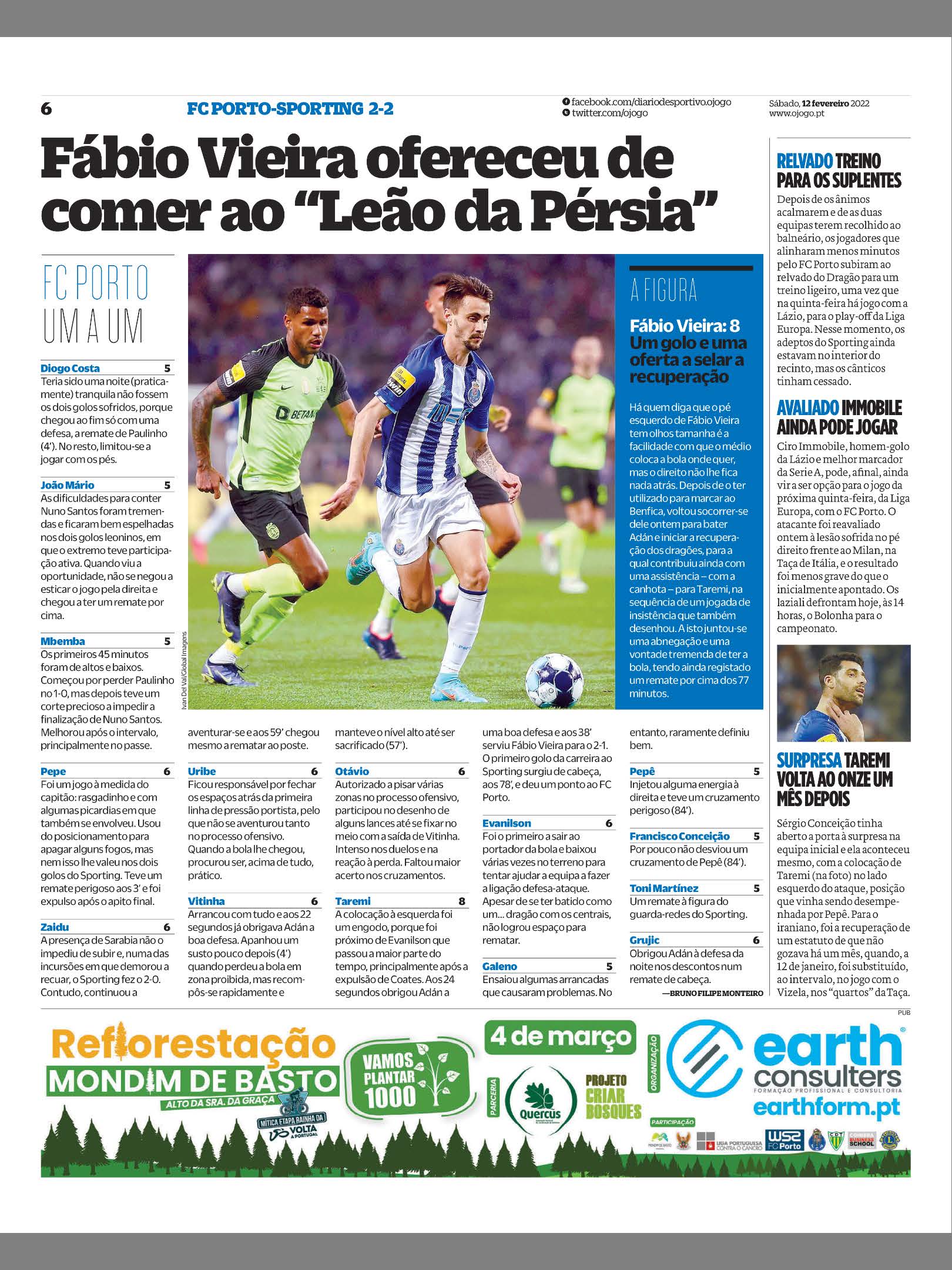 Sergio had opened the door to surprise in the initial team and it really happened, with the placement of Taremi (in the photo) on the left side of the attack, a position that had been played by Pepe. For the Iranian, it was the recovery of a status that he had not enjoyed for a month, when, on January 12, he was replaced at half-time in the game with Vizela, in the "quarters" of the Cup.