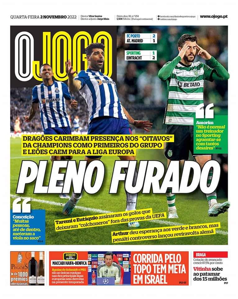 Porto and Benfica both advanced, Sporting only failed to advance on final night and went through to EL, still a solid achievement.