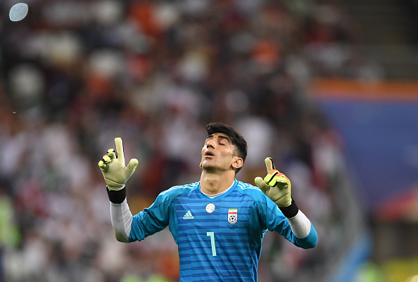 25 June 2018, Russia, Saransk: Soccer: FIFA World Cup 2018, Iran vs Portugal, group stages, group B, 3rd matchday, Saransk Stadium: Goalkeeper Alireza Beiranvand from Iran. Photo: Andreas Gebert/dpa (Photo by Andreas Gebert/picture alliance via Getty Images)